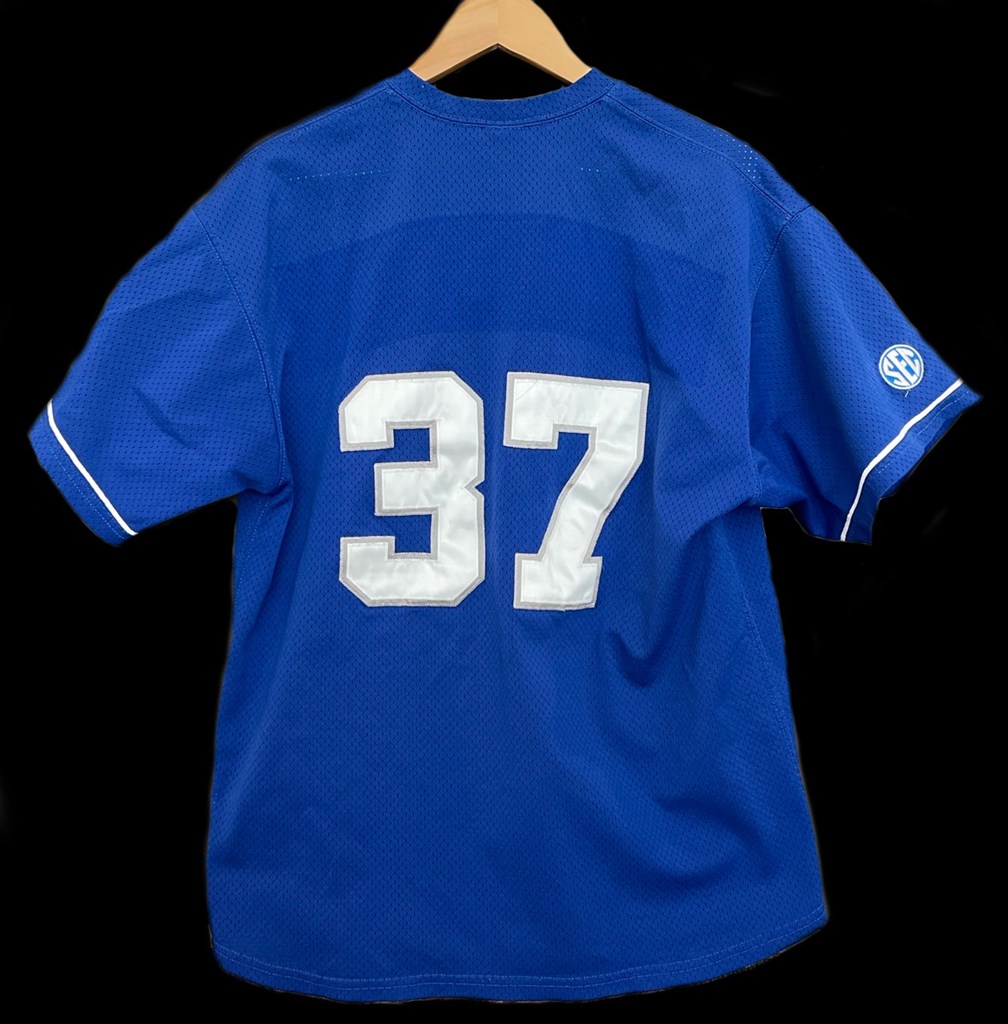 This auction is for an authentic Nike Baseball Jersey with SEC logos on each sleeve. Worn by #37 Cam Hill Size 44